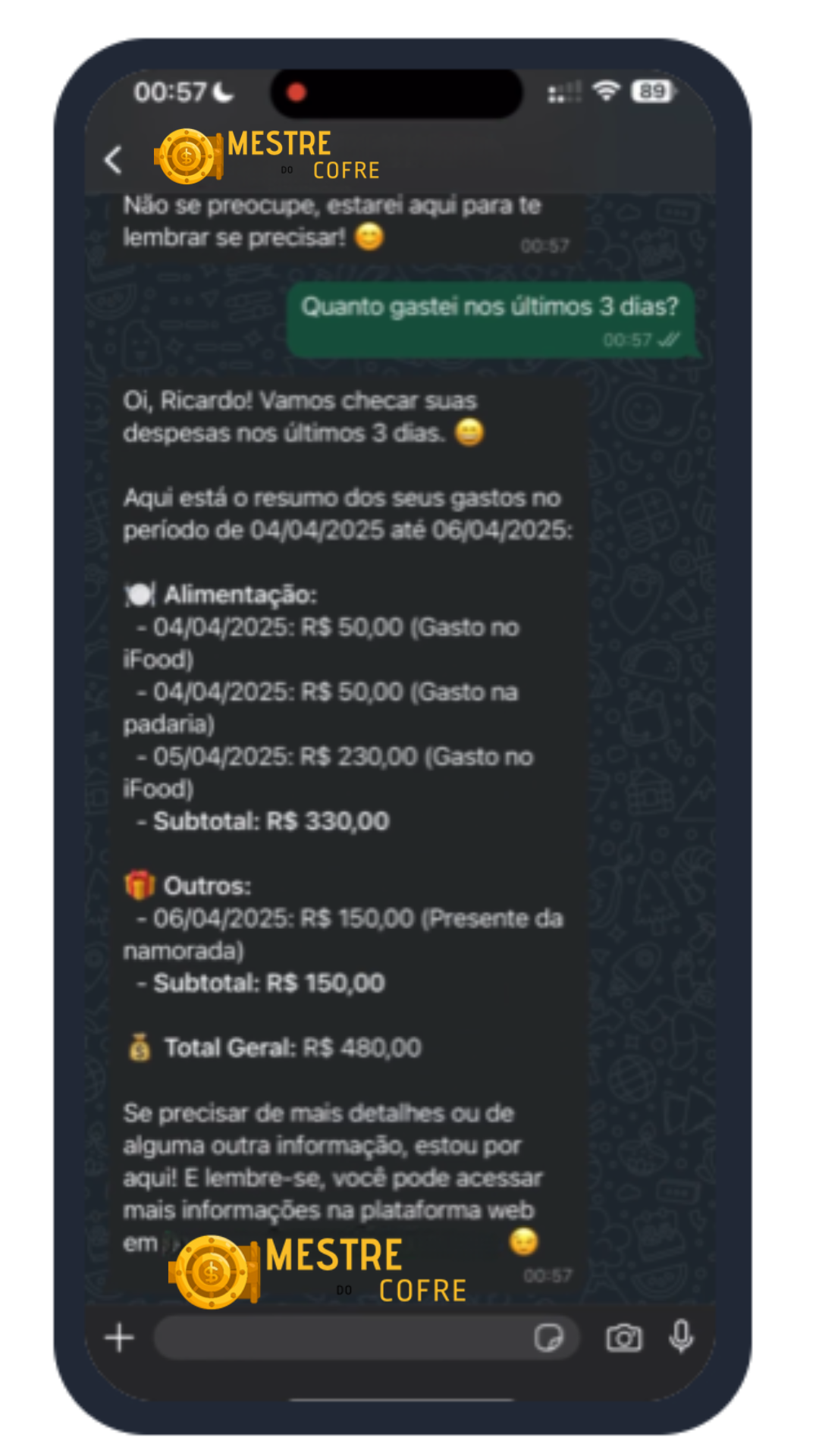 Visão geral completa das despesas no Cartão