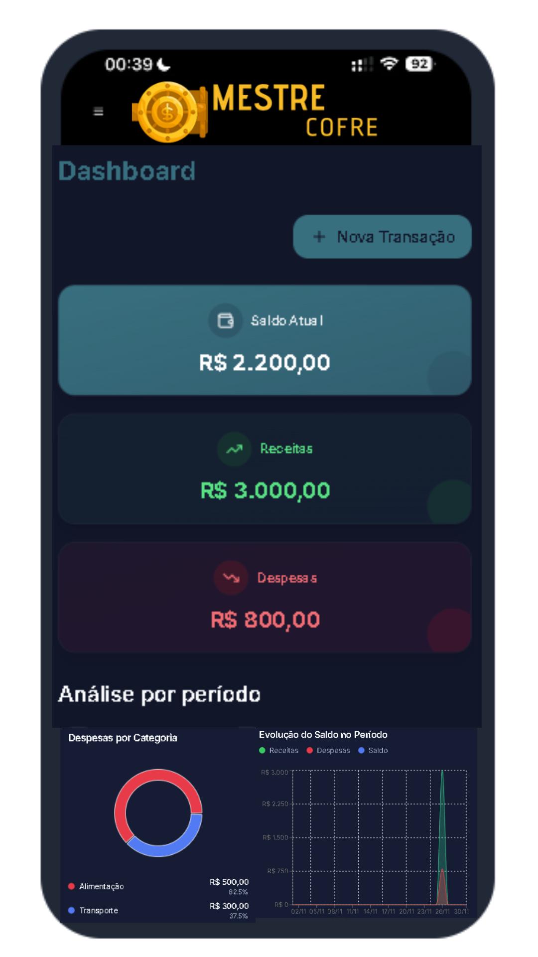 Registre receitas e despesas de forma rápida e organizada